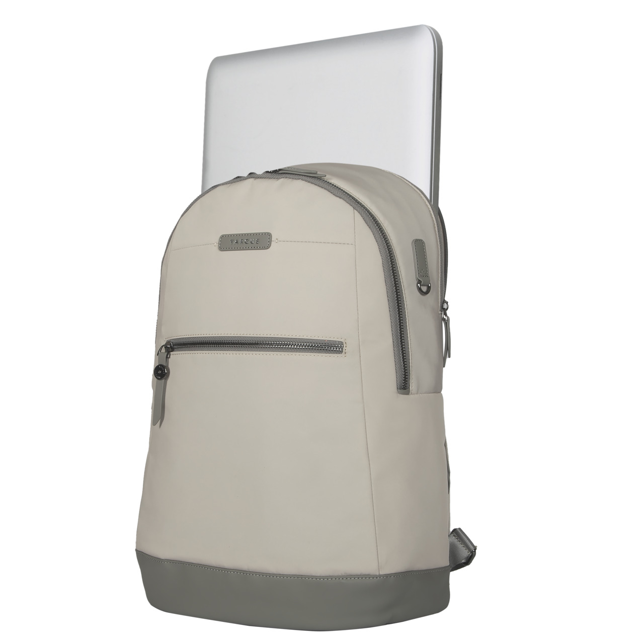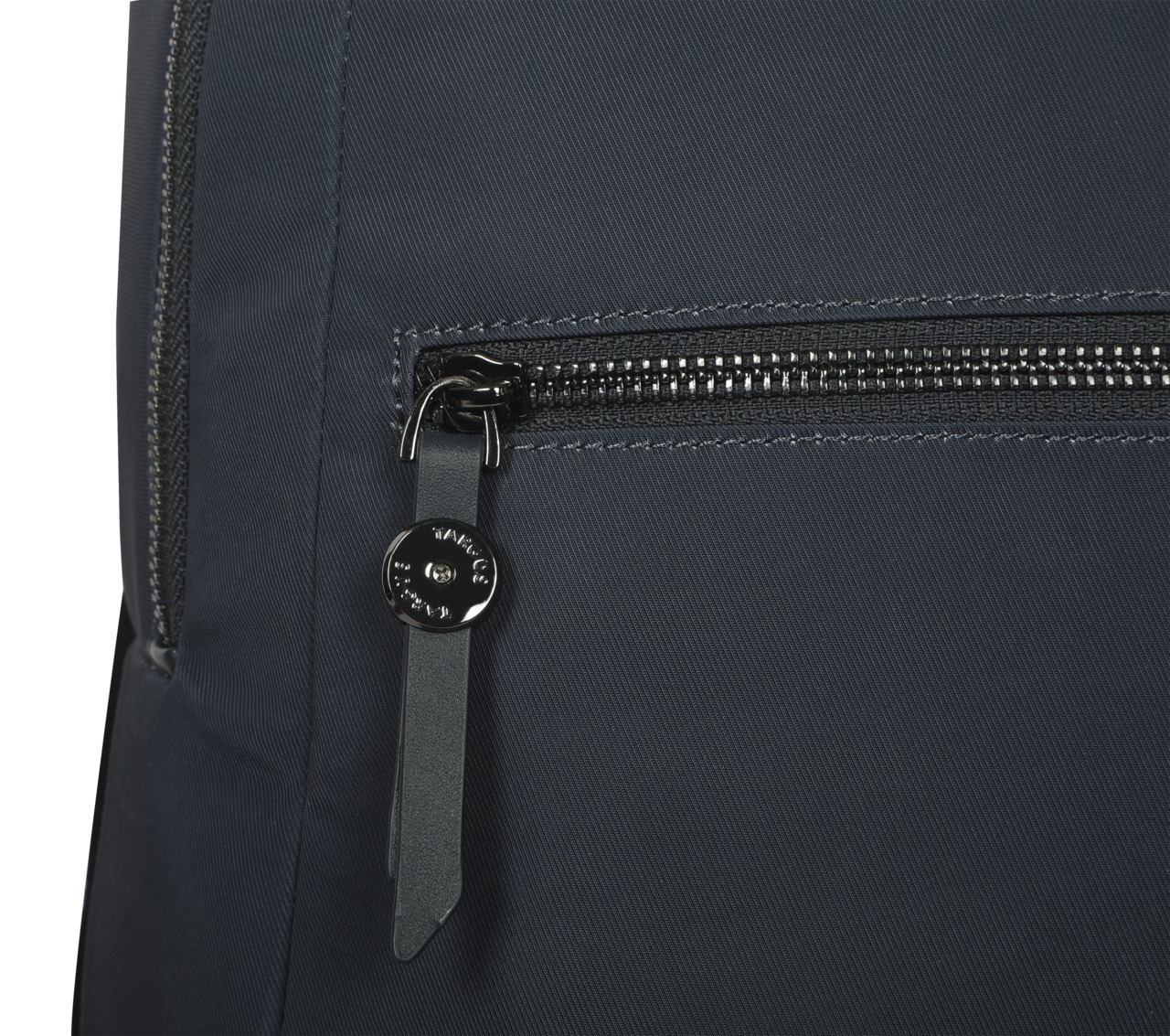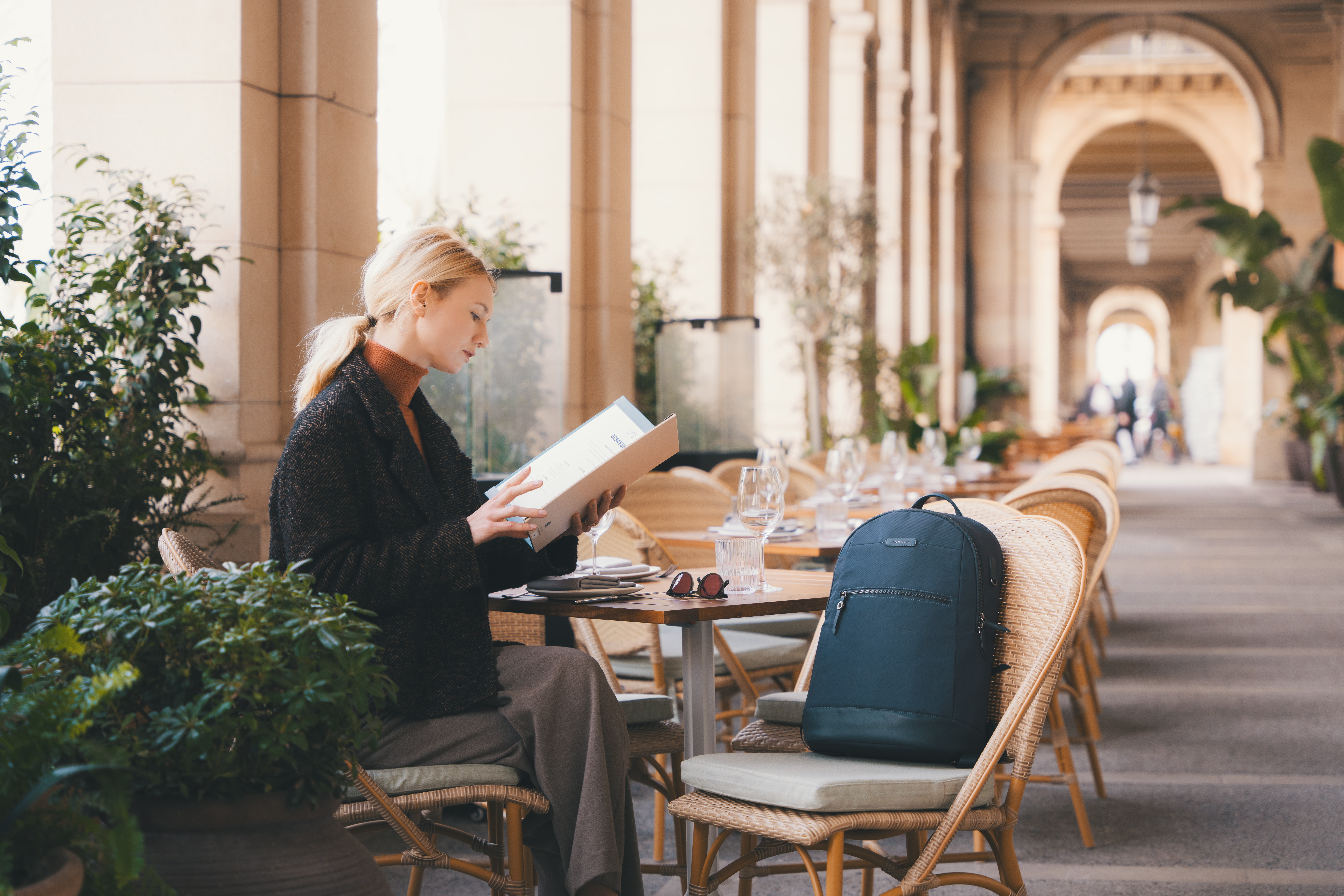 - 專用拉鏈筆電隔層,保護筆記型電腦安全 - 15公升次要隔層,內含一個拉鏈袋和四個滑袋,便於分門別類收納 - 前置便捷拉鏈袋,快速存取手機、八達通等隨身小物 - 隱藏背部安全袋,額外保障貴重物品安全 - 可調節軟墊肩帶與柔軟頂部手柄,提升背負與提拿舒適感 - 行李箱固定帶,輕鬆扣於拉桿行李箱上,方便出行 - 明亮內裡,輕鬆找到包內物品 - 防水記憶布料,耐用且抗潑水 - 高級金屬配件與素皮細節,質感與時尚兼具