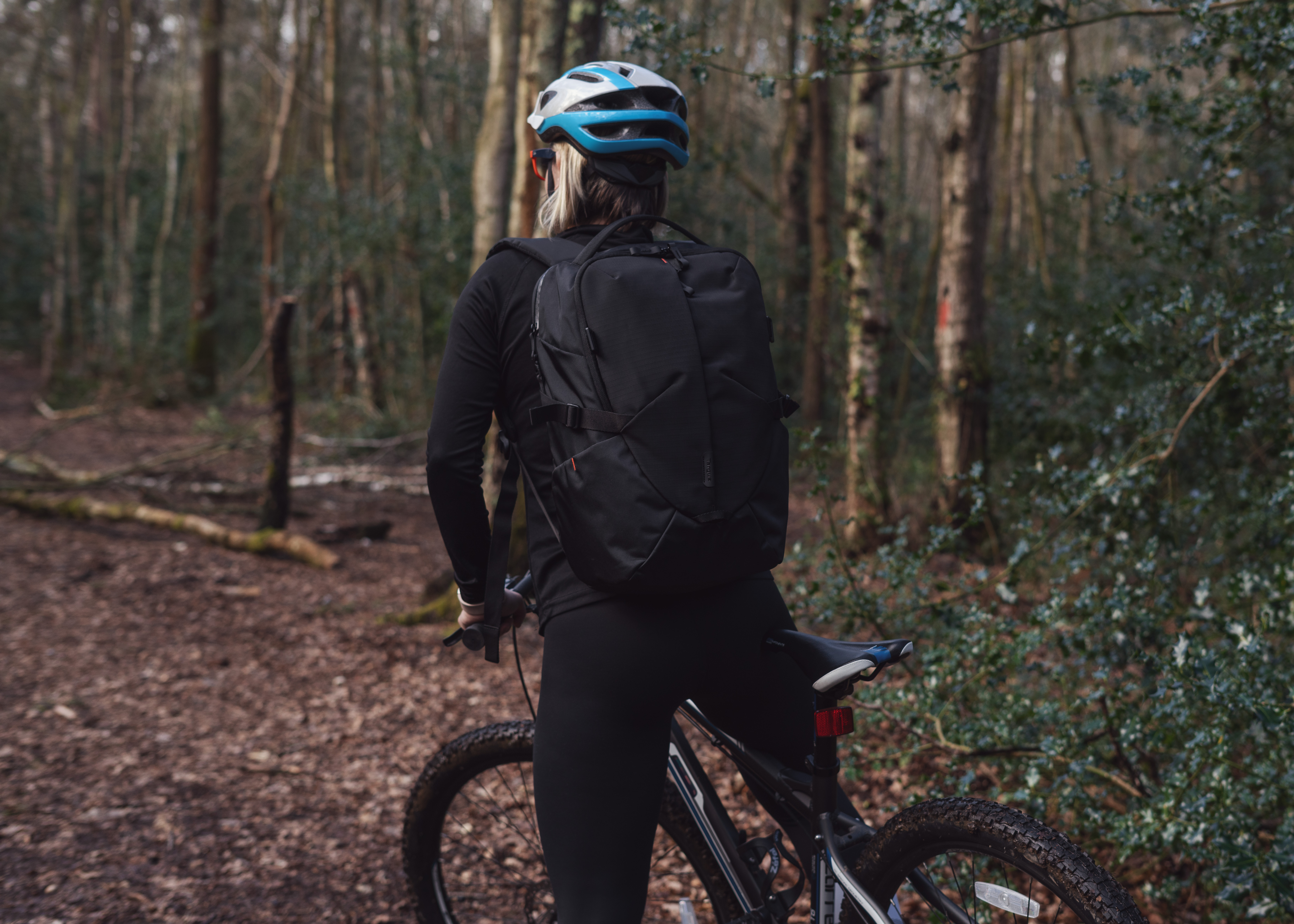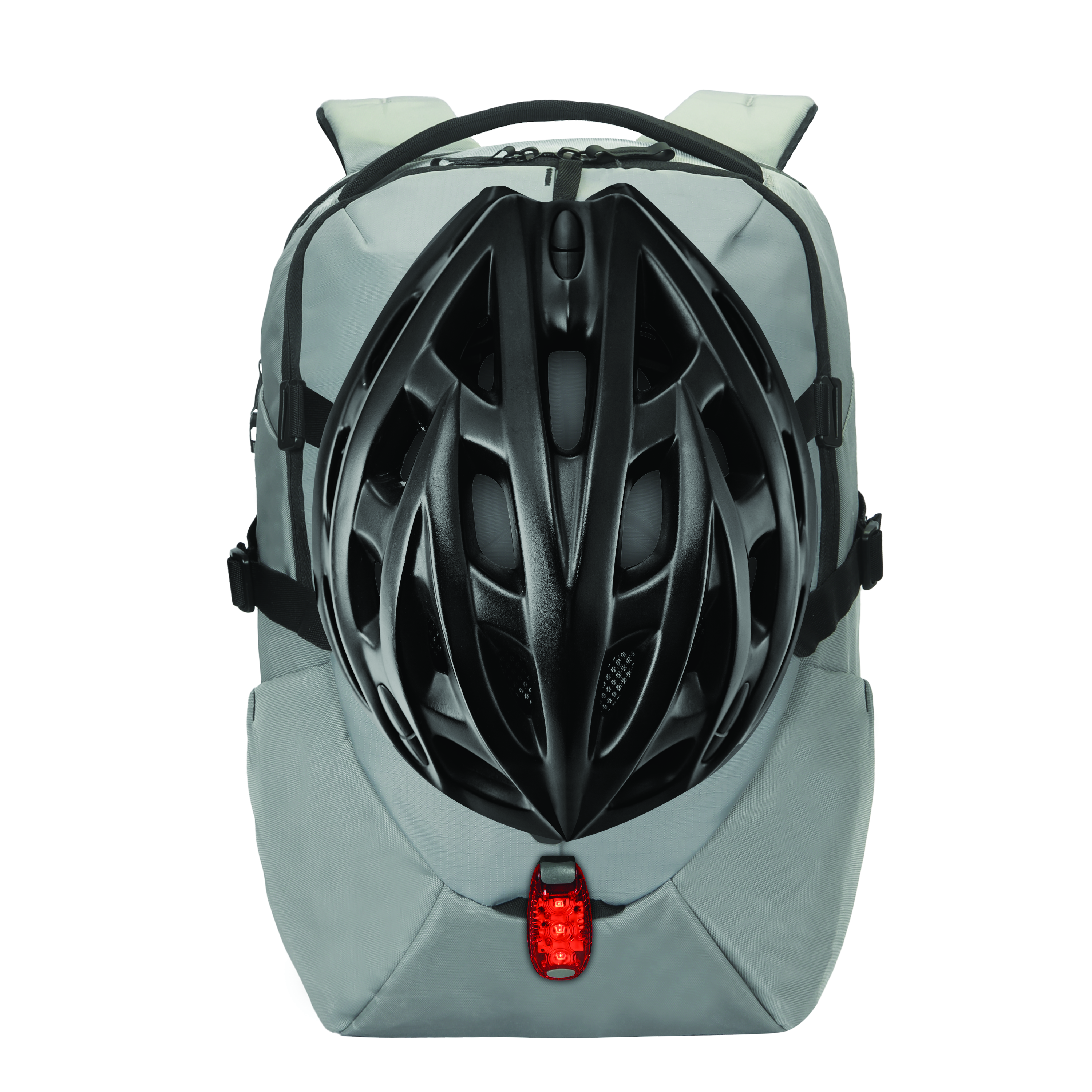 - 適用於15-16吋筆記型電腦 - 筆記型電腦收納快取層 - 23L 容量設計,攜帶日常用品 - 背部散熱網狀設計,提升背負舒適感 - 前拉鍊設計,收納小物空間 - 外部頭盔掛勾設計 - 行李固定帶 - 兩側口袋可放置水壺、雨具 - 兩側壓縮帶,降低行走間搖晃 - 後方快取拉鍊口袋提供雨罩 - 可搭配自行車專用燈 (需另購)